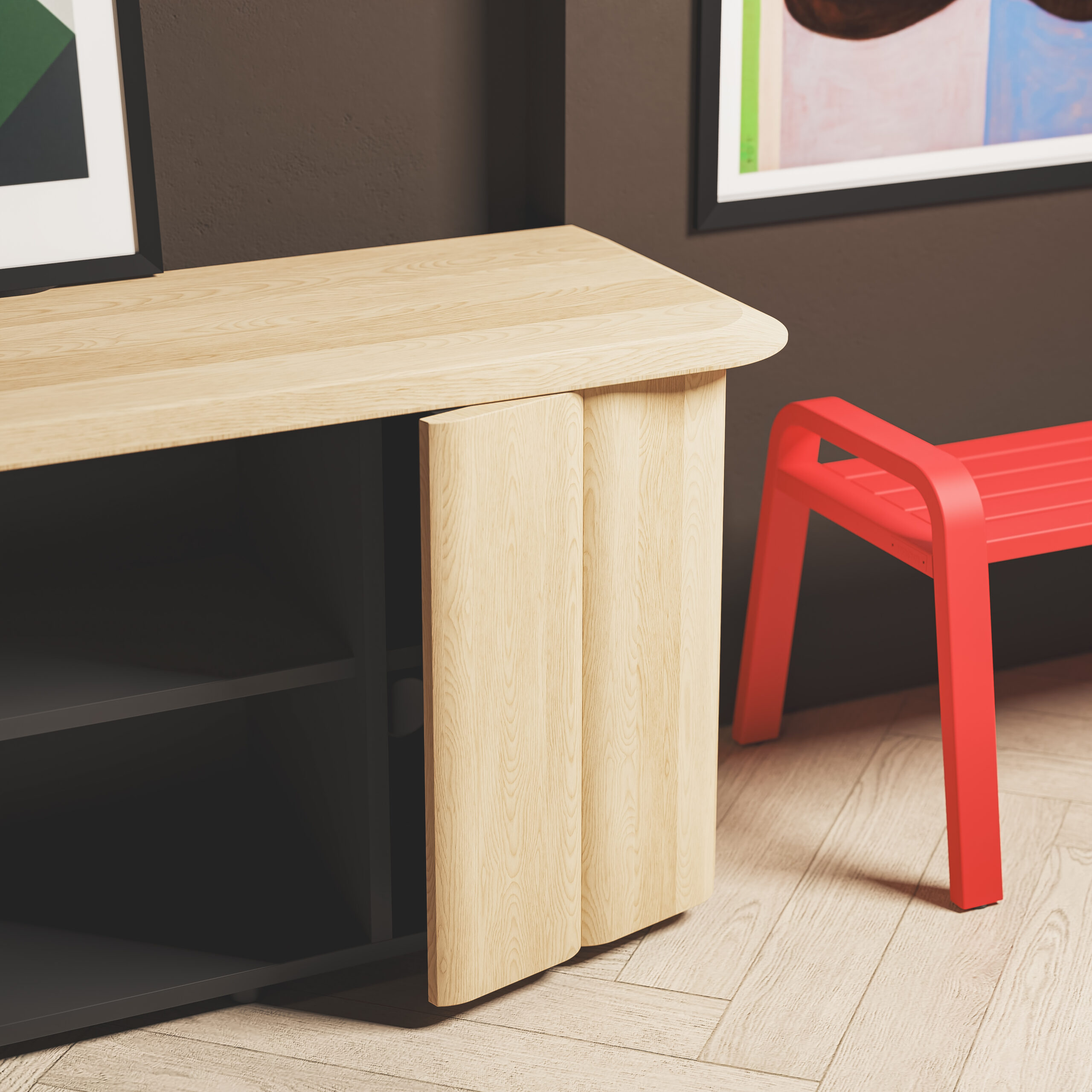The Isle Credenza brings a softer, more domestic feel to commercial interiors. With rounded ends and a waterfall edge detail on solid ash tops, it’s a piece that feels as good as it looks, inviting, honest, and effortlessly stylish.
