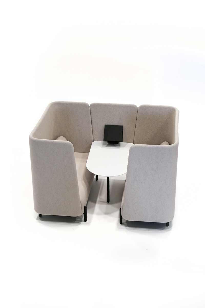 Choose the High Booth for acoustic privacy and deep focus, or the Low Booth for open visibility and relaxed collaboration. One collection, two distinct moods.